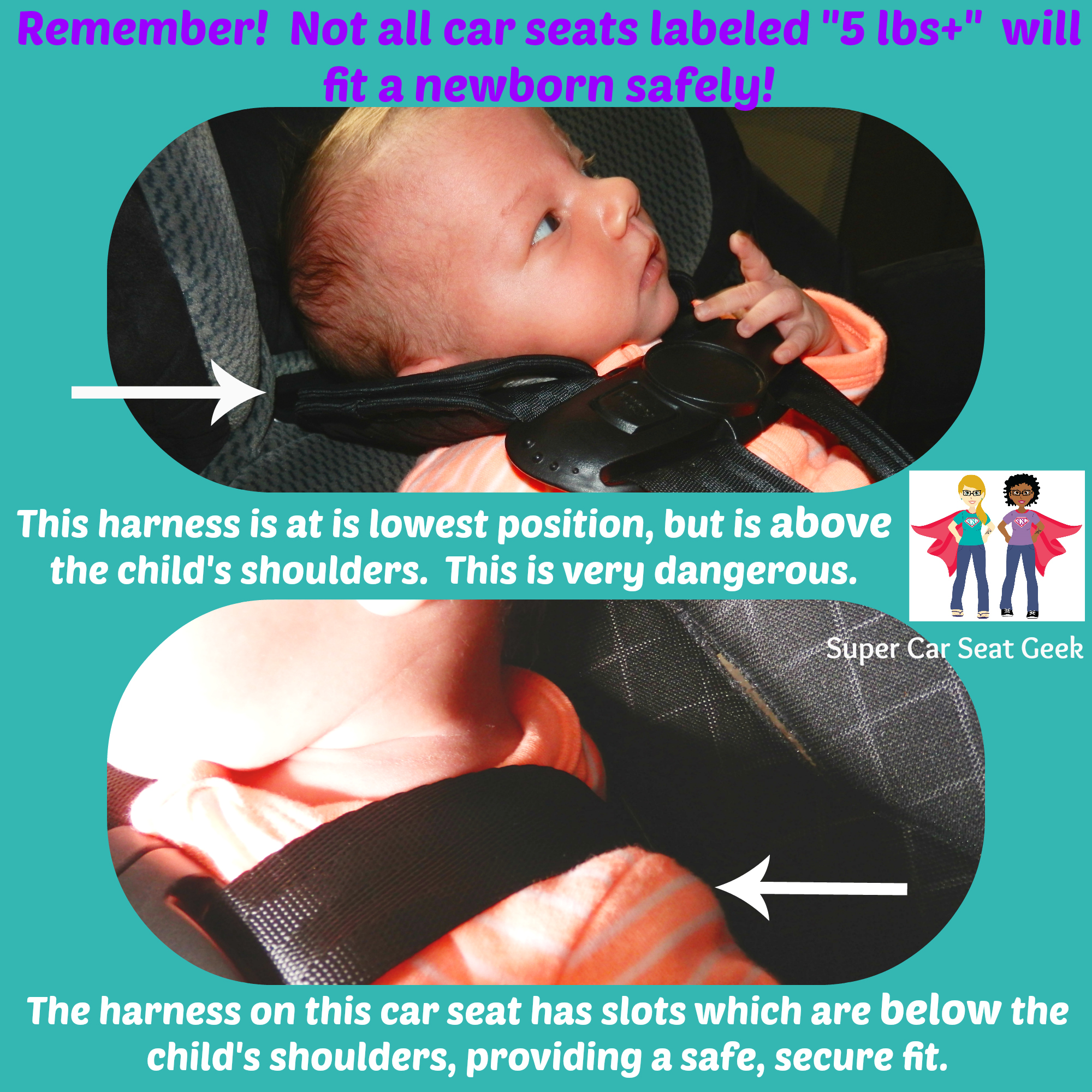 Make sure that the seat back is adjusted so that the shoulder belt is coming from above the child’s shoulders.