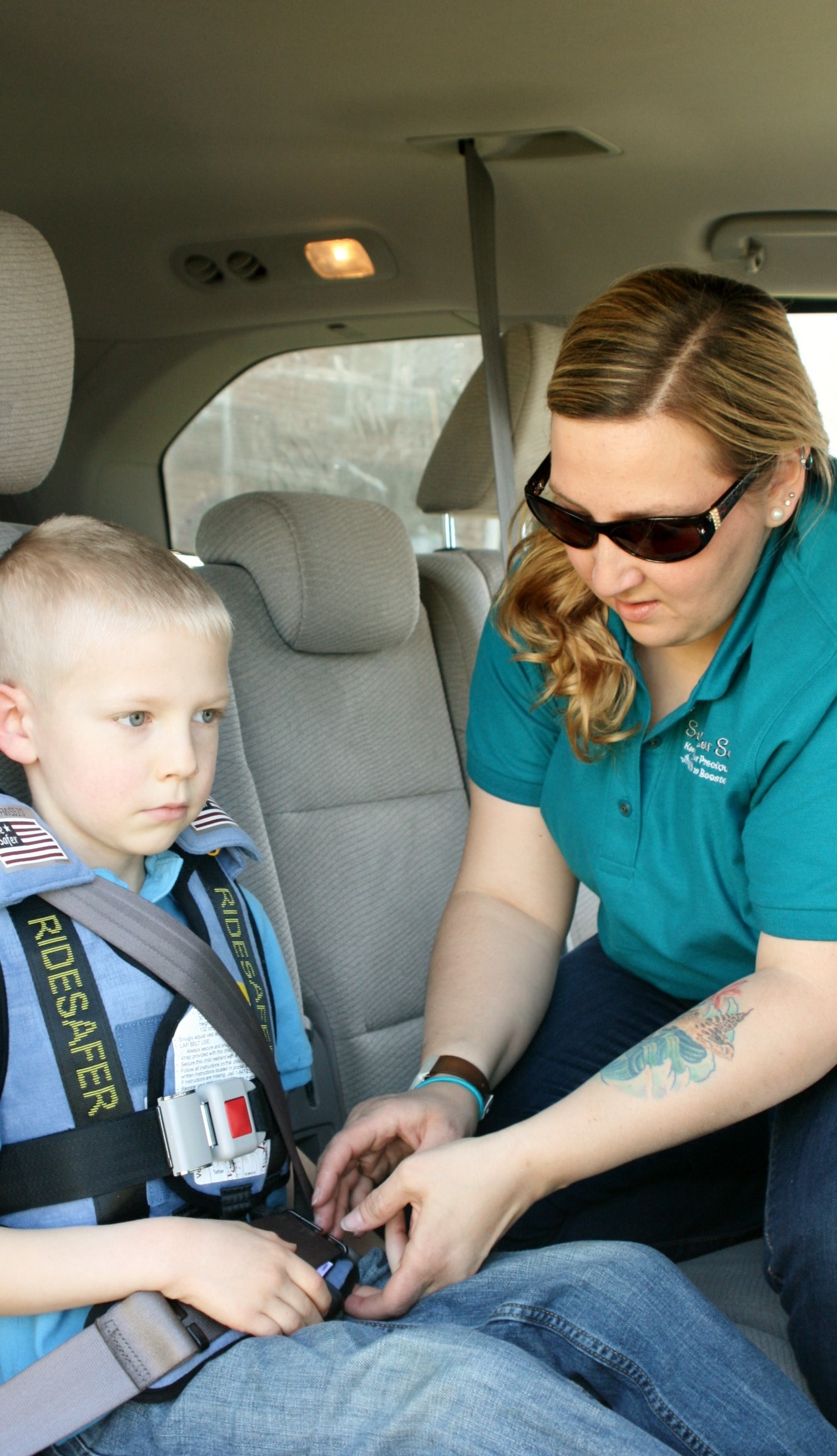 Let’s face it: traveling with kids can be quiteย challengingย at times; and not just from the whining and “Are-we-there-yets”. ย There’s a lot of stuff to haul around too! ย In addition to bringing all of your clothes, toiletries and bribesย items for entertainment or distraction, you also need to bring their car seat or booster. ย Since the average child needs a booster until they’re between 10 and 12 years of age, we parents have a lot of thingsย to lug around for a long time! ย But there is an option that can make traveling with a slightly older child much easier!–The Ride Safer Travel Vest (RSTV).